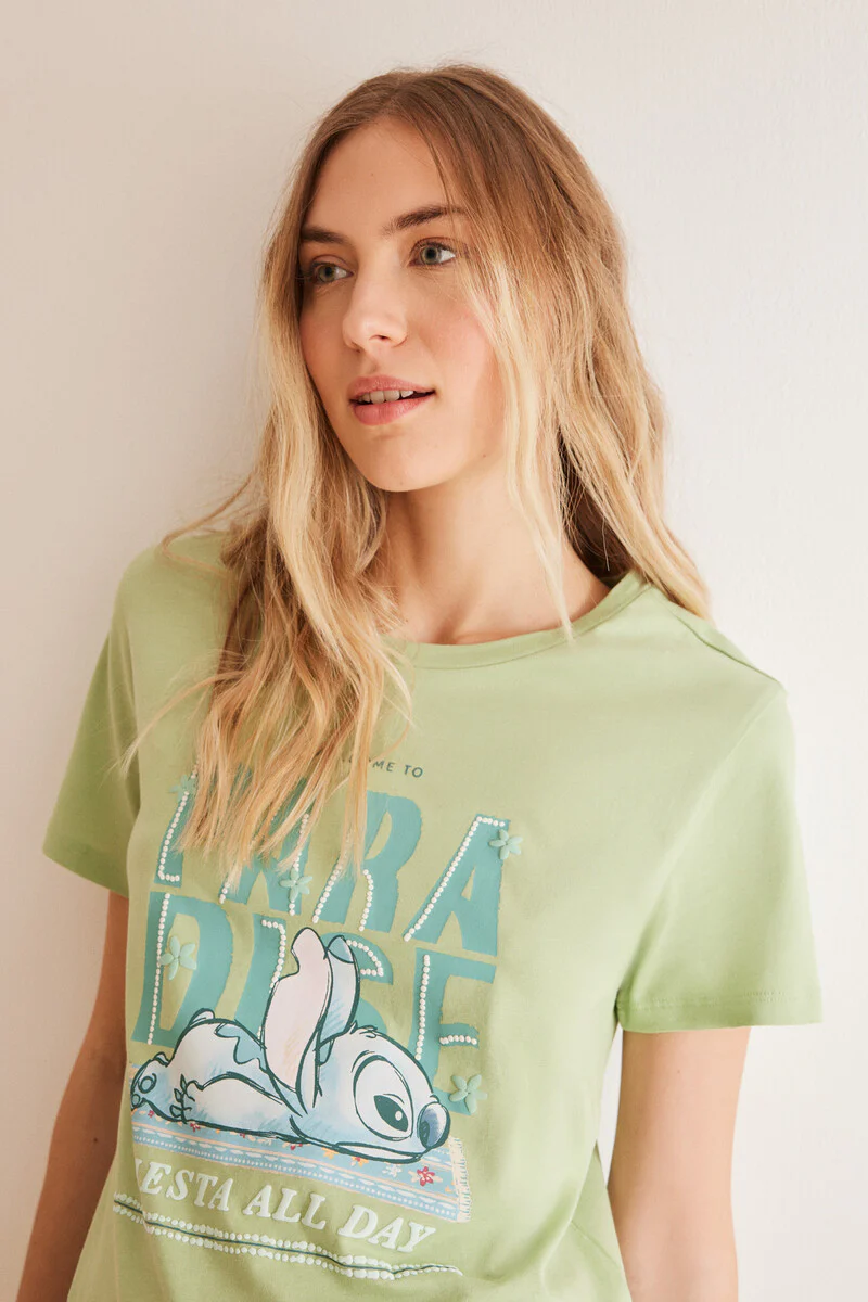- Round neck top with Stitch print detail on the chest.