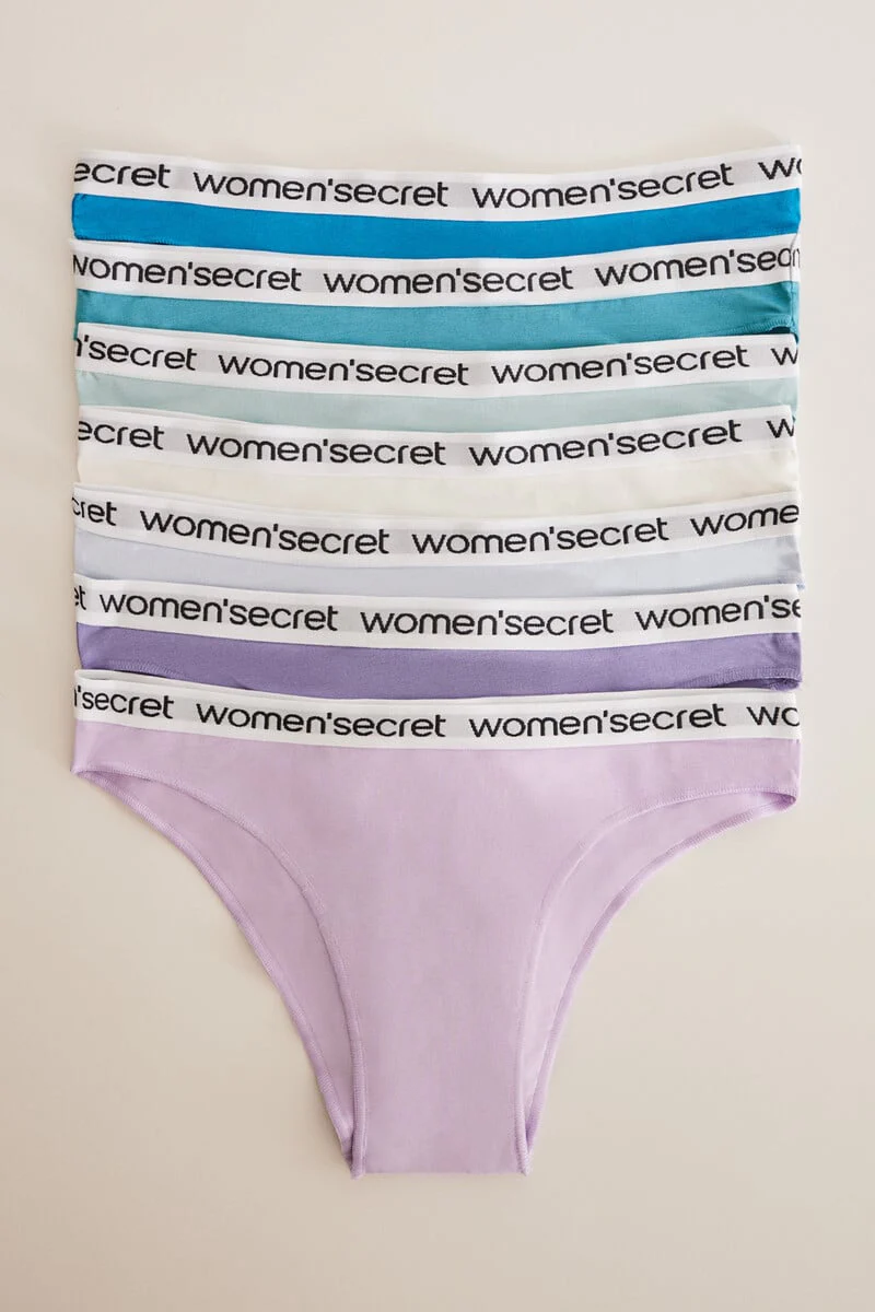 Pack of seven pairs of cotton Brazilian panties with 'Women'Secret' logo on the elastic waistband. An underwear drawer essential. Guaranteed comfort, all day long!