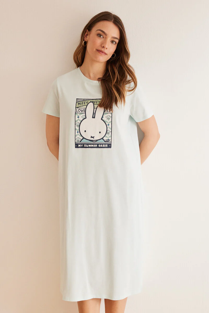 100% cotton midi nightgown in green with front Miffy print. Super comfy and ideal for bedtime or lounging at home in style.