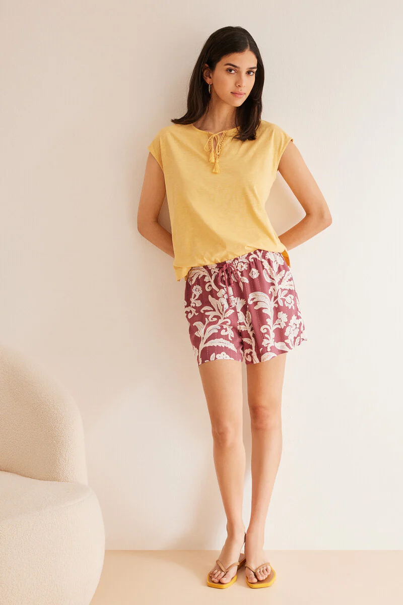 T-shirt with short dropped sleeves in slub textured cotton in a lovely yellow colour. Match it with your favourite bottoms - take your pick from the same collection.